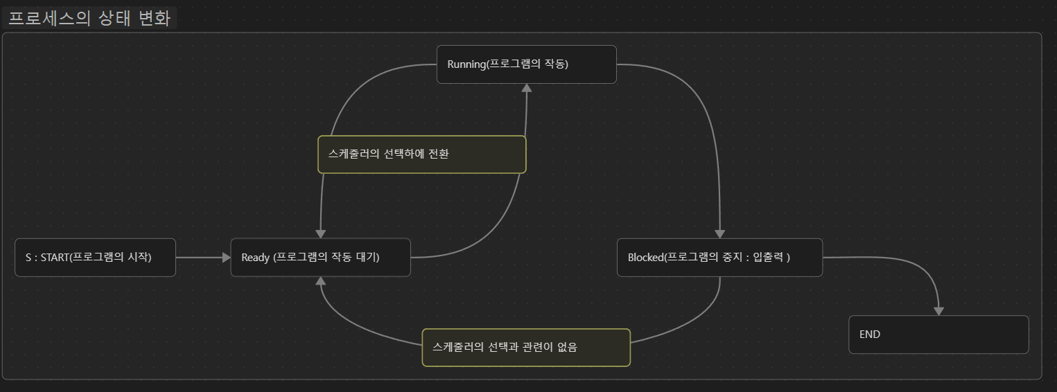 Running → Ready (시간 할당 종료, 선점) Running → Blocked (I/O 요청) Blocked → Ready (I/O 완료) 여기서 중요한 포인트: